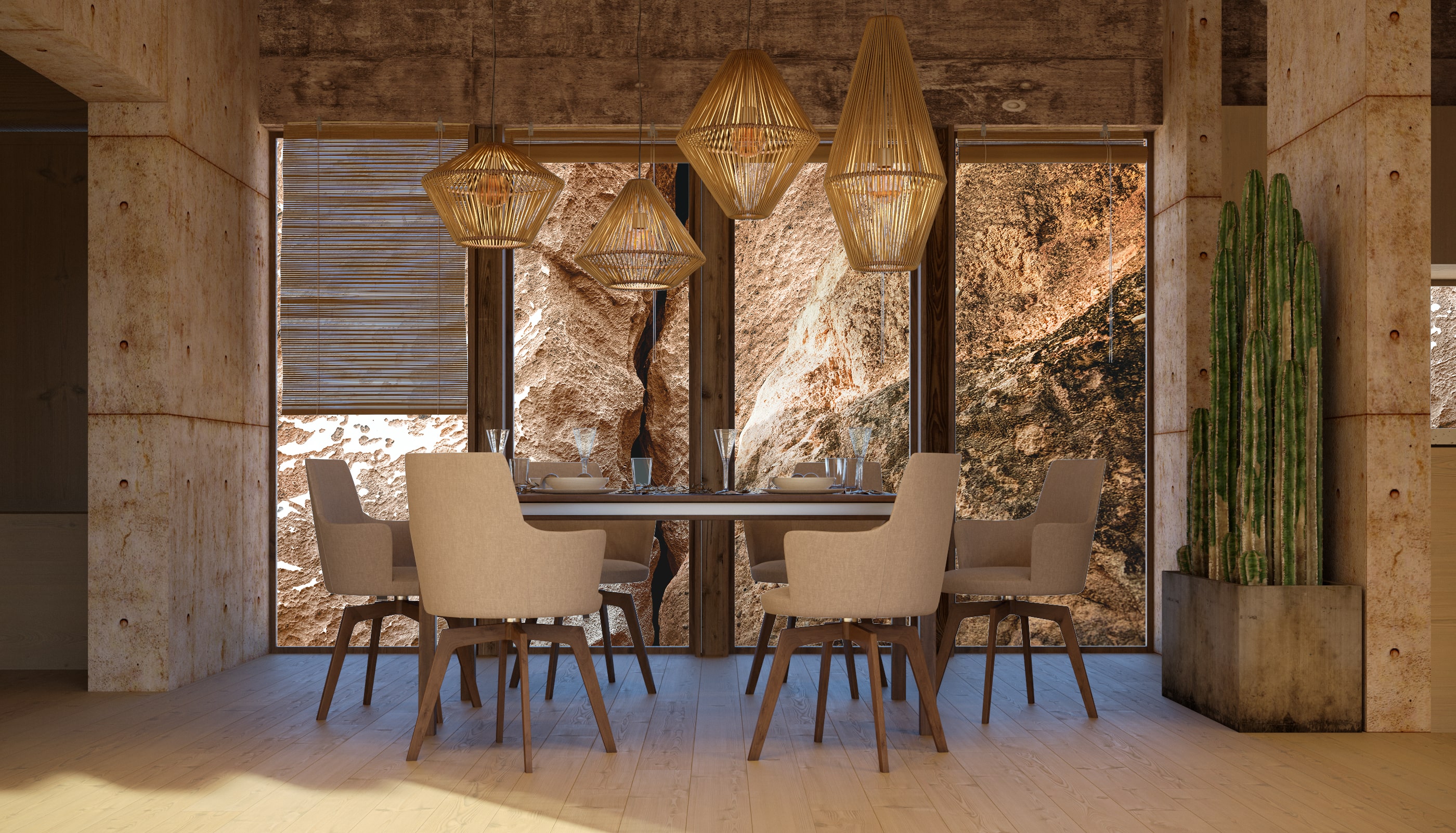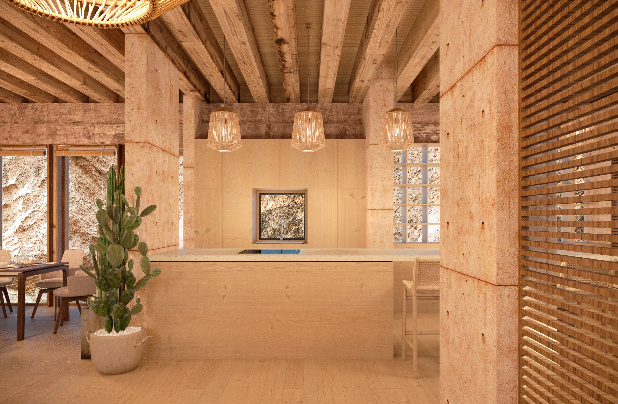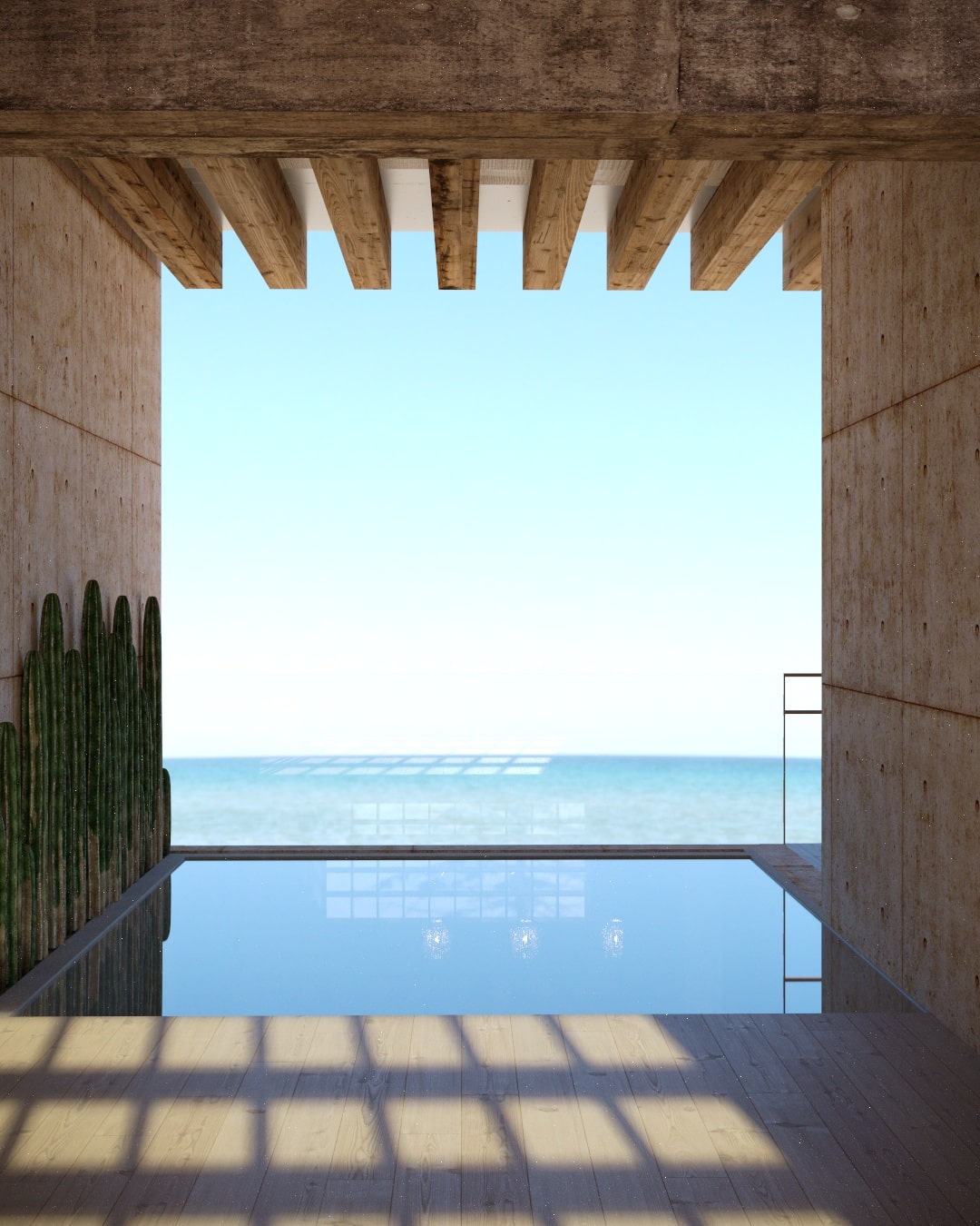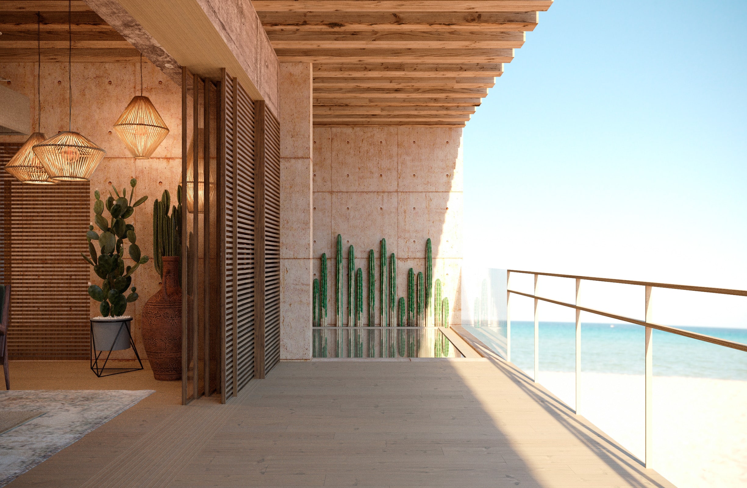 Casa Aragón se alza en una pendiente pronunciada de la costa de Oaxaca, desafiando la gravedad para brindar una experiencia única. El núcleo central, construido con concreto pigmentado que se integra armónicamente con el entorno rocoso, alberga tres niveles de habitaciones que maximizan las vistas. Una extensión perpendicular sostenida por columnas de concreto presenta un nivel horizontal con cocina-bar, sala de estar, piscina y una amplia habitación privada, todo con acceso a vistas panorámicas hacia el horizonte y un muro natural de piedras. La cubierta superior invita a la relajación y la celebración, con un deck diseñado para eventos ocasionales y una habitación adicional, ofreciendo un refugio privado para visitas especiales. Su arquitectura redefine la vida costera con elegancia y atención al detalle, cada rincón se diseñó para celebrar la vida junto al mar sobre una playa privada.